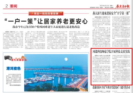 《秦皇岛日报》:best365中国官方网站开展科技支农实践【农学与生物科技学院】