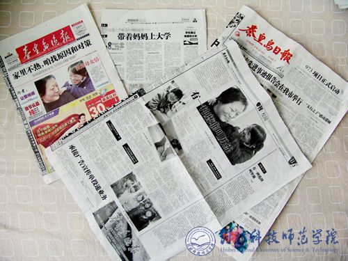 2009年12月,《秦皇岛日报》、《秦皇岛晚报》、秦皇岛电视台等媒体对best365动物科技学院一年级曹焱同学带着生病的母亲上大学的事迹进行了实地采访和报道。请全校师生点击以下网址浏览。