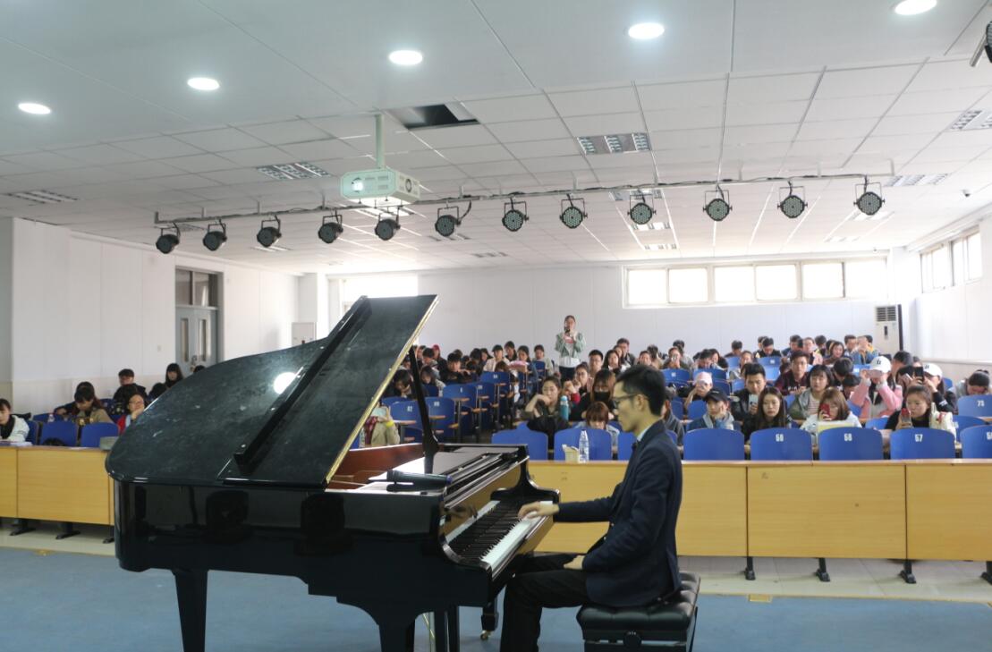 4月6日下午,图书馆联合艺术学院特邀古典音乐讲师、钢琴演奏家马辰在开发区校区作“中国音乐名作欣赏——中国古诗词里的音乐意境”专题讲座。讲座中,马辰老师把中国的古诗词与音乐巧妙的结合,并现场演奏了多曲动听的中国风音乐作品,给同学们带来了一场听觉饕餮盛宴,并将音乐文化带进大学校园,使大学生近距离感受了中国古典音乐的魅力。
