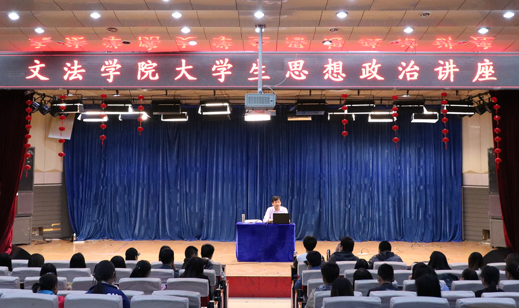 2017年4月20日,文法学院团委在综合楼二楼报告厅举办了大学生思想政治讲座。文法学院学生干部、党员和入党积极分子参加了此次讲座。