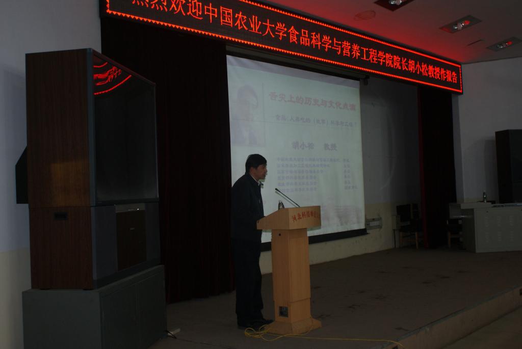 2017年5月3日,中国农业大学食品科学与营养工程学院院长胡小松教授应食品科技学院邀请来best365做了题为“舌尖上的历史与文化点滴”的学术报告。300多名师生听取了报告。