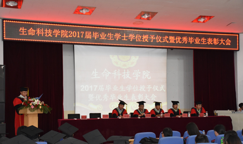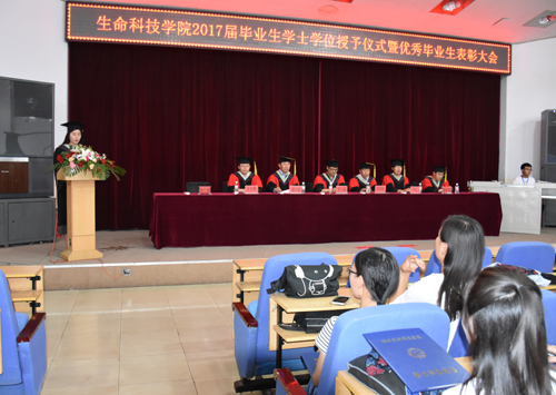 6月15日,生命科技学院2017届毕业生学位授予仪式暨优秀毕业生表彰大会在昌黎校区学术报告厅举行。2017届 6个本科专业的309名毕业生生以及学院全体党政领导、学生工作办公室、学位委员会成员和毕业班班主任参加了典礼。