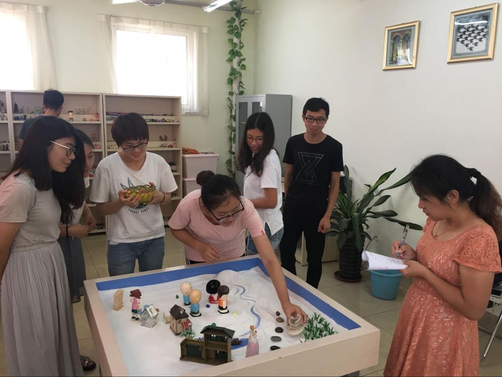 2017年6月26日,外国语学院心理咨询老师为暑期社会实践的8名成员开展了以“团队协作、体验成长”为主题的团体沙盘辅导。旨在通过心理辅导,挖掘每个人的特质,更好地进行团队协作促进暑期社会实践。