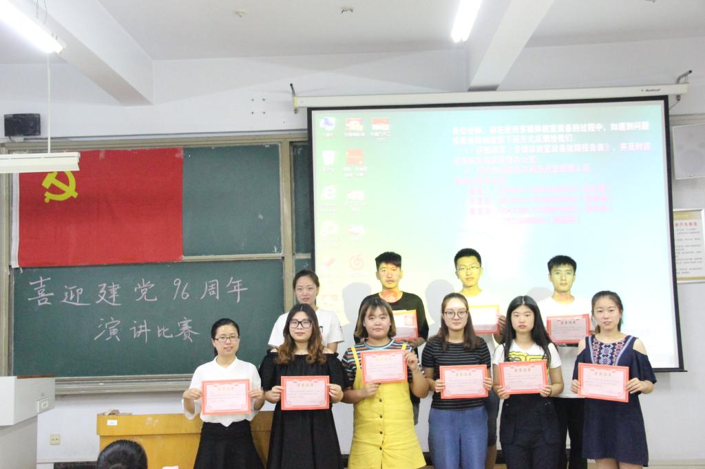 2017年6月29日晚,数学与信息科技学院学生党支部在A309举办“铭记党史,不忘初心、喜迎建党96周年”演讲比赛。学院全体学生党员、积极分子观摩了此次比赛。