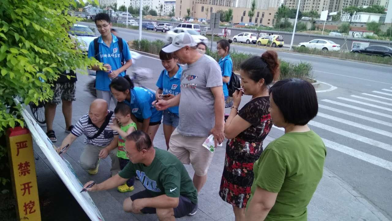 在午后灼热渐渐散去,丝丝凉意来临之时,“护城使者”实践团成员们抬上宣传板到达御品星城社区。在御品星城小公园里,有不少乘凉的居民。实践团向公园的居民们讲明来意,邀请并组织他们进行群众创城政策宣讲活动。队员王中以铿锵有力的语调对创城作了一番演讲,并宣誓和倡导广大群众切身投入到创城活动中,感情投入,慷慨激昂。演讲到最后,一句“文明创建路,海港新里程。我为海港骄傲,海港因我精彩。让我们共同携起手来,从现在做起,从身边的小事做起,全力投入到争创全国文明城市工作之中,为把秦皇岛建成全国文明城市努力奋斗”激动人心,大家纷纷鼓起热烈的掌声。