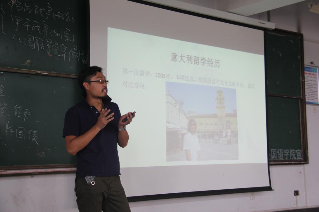 报告会上,意大利留学归国博士孙晓萌、英国曼彻斯特大学访学教师代表王慧、薛浩涵分别向大家介绍了自己在国外的所见所闻所学所感,给大家上了一堂生动的意大利、英国文化课。