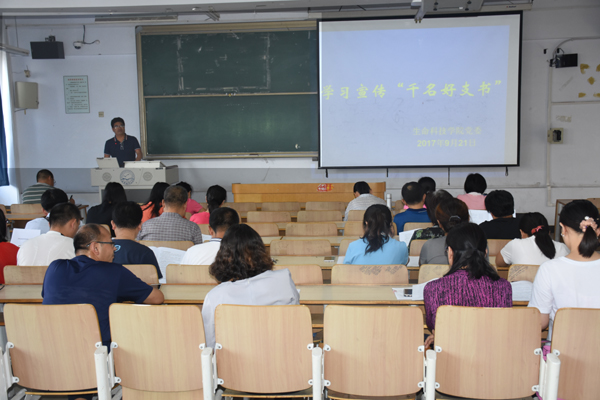 2017年9月21日,生命科技学院党委组织全院教师学习张波同志的先进事迹,号召广大教职工向张波同志学习,接力沈汝波,在“两学一做”学习教育中以优异成绩迎接党的十九大胜利召开。