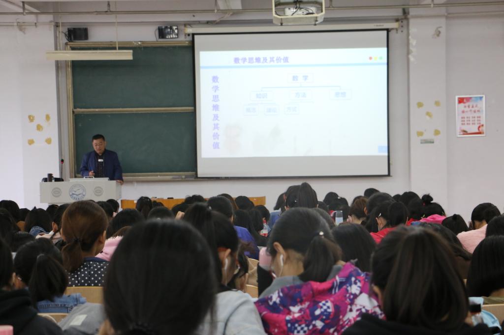 2017年10月10日,河北师范大学博士生导师张更生教授应邀来数学与信息科技学院作题为“数学思维漫谈”的学术报告。学院数学与应用数学专业和应用统计学专业的大一、大二学生及全体数学专业教师聆听了报告。