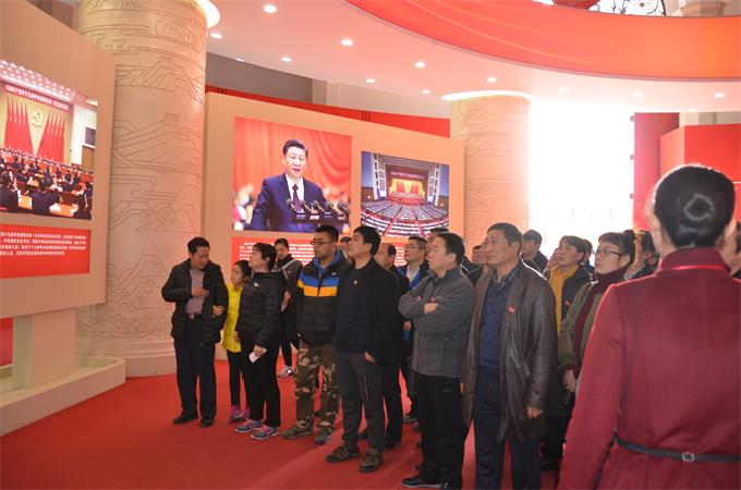 党员们跟随着讲解员,先后参观了“开辟治国理政新境界,开创中国特色社会主义新局面” 、“践行新发展理念,引领经济发展新常态”、“坚持中国特色社会主义政治发展道路,推进国家治理体系和治理能力现代化”、“坚定文化自信、创造中华文化新辉煌”、“以人民为中心,增进群众获得感”、“绿水青山就是金山银山,迈入社会主义生态文明新阶段”、“实现强军目标,建设世界一流军队”、“丰富‘一国两制’实践,推进祖国统一”、“推动构建人类命运共同体,谱写中国特色大国外交新篇章”、“全面从严治党,确保党始终成为伟大事业的坚强领导核心”等十个展区;随后进入特色体验展区进行体验。