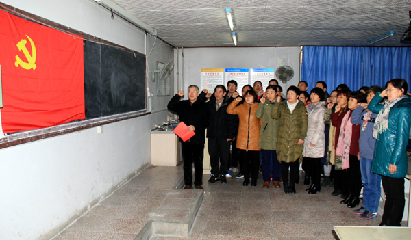 会上,学院党委还向全体教工党员发出了“发挥先锋模范带头作用,助推审核评估圆满完成”的倡议书,并组织全体党员重温了入党誓词。