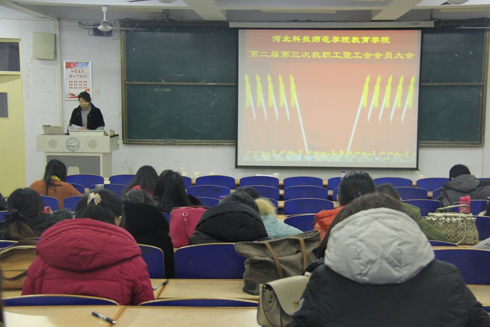 2018年1月4日,教育学院在开发区综合楼212室召开第二届第三次教职工暨工会会员大会,学院全体教职工参加了会议。