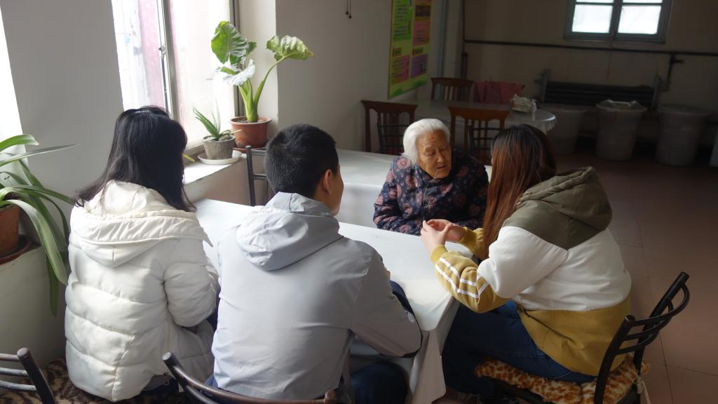 志愿者分成几组与老人们亲切交谈、深入交流,了解老年人的对生活的理解,对亲人的挂念、对国家社会的关心。老人们更多的是回忆自己的过去,用自己的经历来鼓励同学们在年青时要好好努力,告诫大学生一定要珍惜青春年华,不能辜负人生最美好的时光。期间,志愿者们还给老人们表演舞蹈、歌曲等节目。