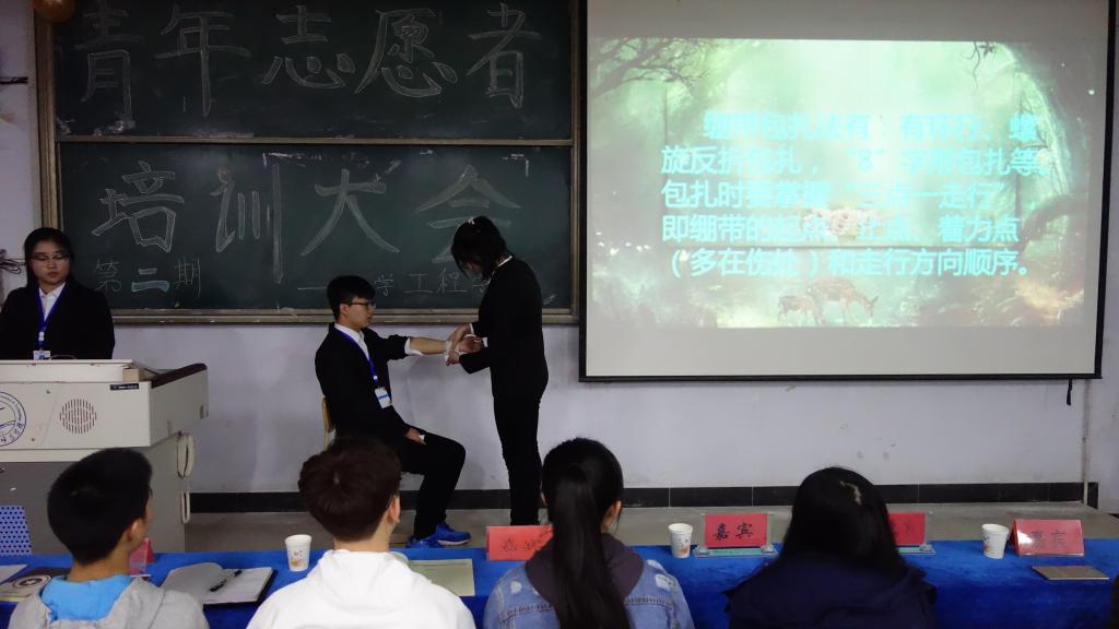 会上,同学们回顾了上学期大会内容。然后为大家讲解并展示了学习、生活中遇到突发意外情况时,应如何采取急救措施以及正确的伤口包扎办法。培训设置了有奖问答环节,充分调动了同学们的参与的热情,同学们在娱乐中丰富了急救知识,受益颇深。(编辑:赵辉 审核:唐代清)