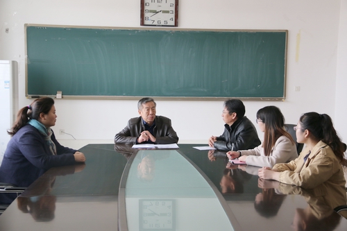 2018年4月10日上午,财经学院负责同志、学生工作的主管领导与即将到青龙满族自治县职教中心教育顶岗实习的刘慧和石江娜两位同学座谈。刘慧和石江娜同学的辅导员参加了座谈。