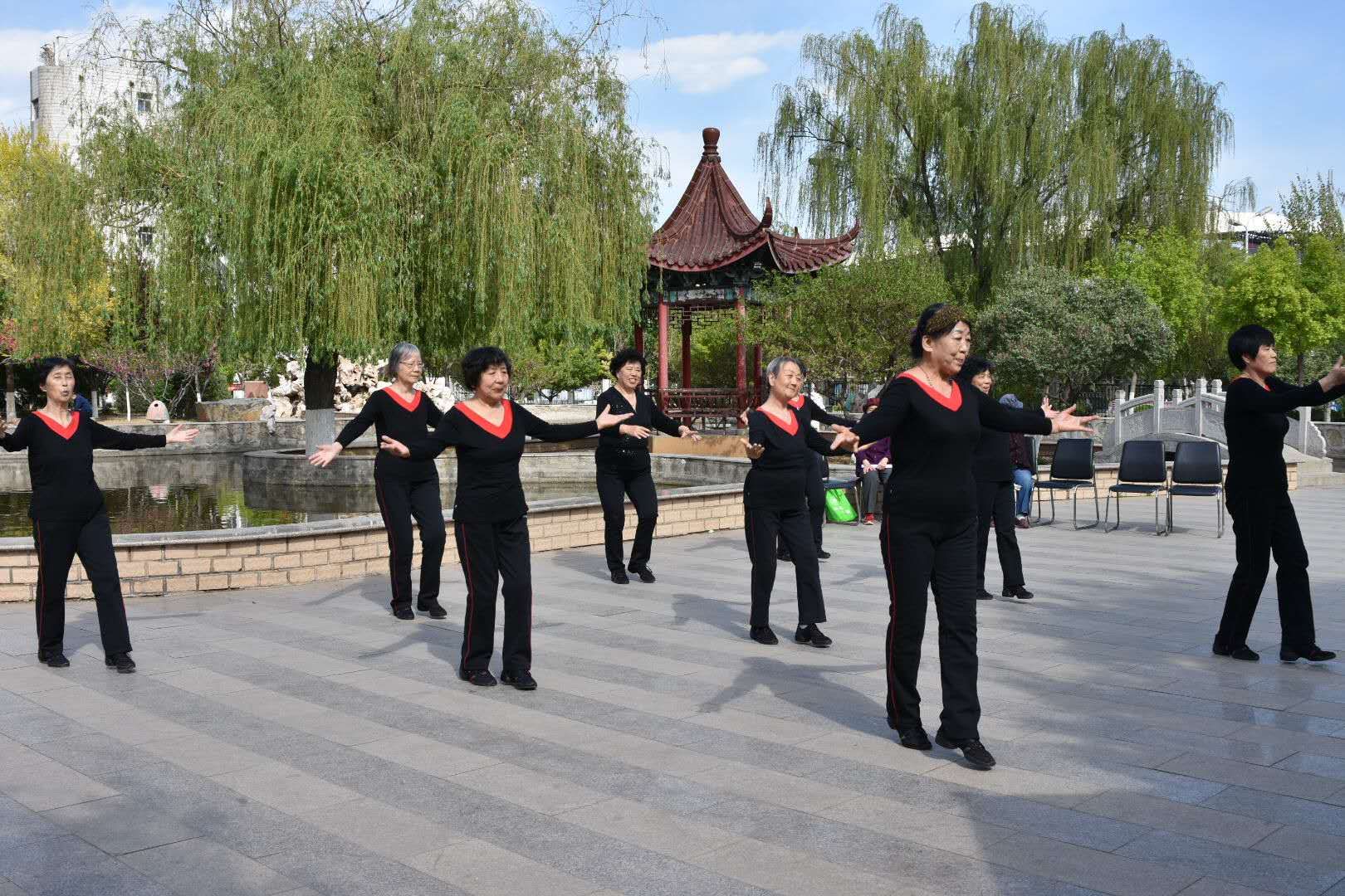 一首大合唱《秦皇岛,我可爱的家园》拉开了演出的序幕,展示了离退休老师们对美的追求,唱出了他们心中美好的期盼和对可爱家园的赞美。王泽惠老师的空竹表演将演出推向高潮,他身手敏捷、姿态轻盈,彩色的空竹时而在头顶环绕,时而在脚下盘旋,舞动起来似行云流水,让观众拍手称奇。同学们的歌声让大家感受到了青春的气息。舞蹈队王凤英等几位老师轻盈优美、婀娜多姿的舞蹈,让现场的观众大饱眼福。模特队赵秀华等几位老师的模特秀美不胜收、韵味十足将现场气氛被调动得更加热烈。小合唱、独唱、女生二重唱,艺术团合唱队的老师们用不同形式演绎歌曲,有的激情澎湃、有的宛转悠扬。演员们美好的身影和蓝天白云、绿树碧波融为一体,整台演出在总策划兼主持人叶淑英老师的祝福中落下帷幕。