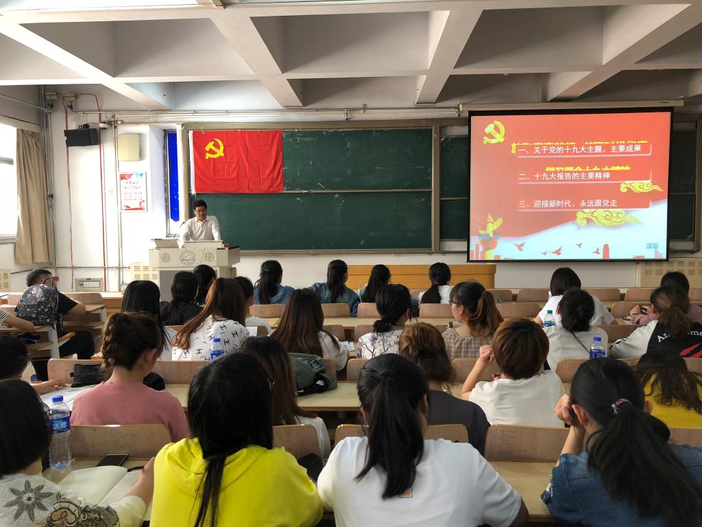 学院党委负责人以《放飞青春梦想,书写时代华章》为题,结合自身学习十九大会议精神的感悟和体会,从关于党的十九大主题、主要成果;十九大报告的主要精神;迎接新时代、永远跟党走等三个主要方面,面向青年学生对十九大精神和核心要义进行了宣讲、解读和阐释。