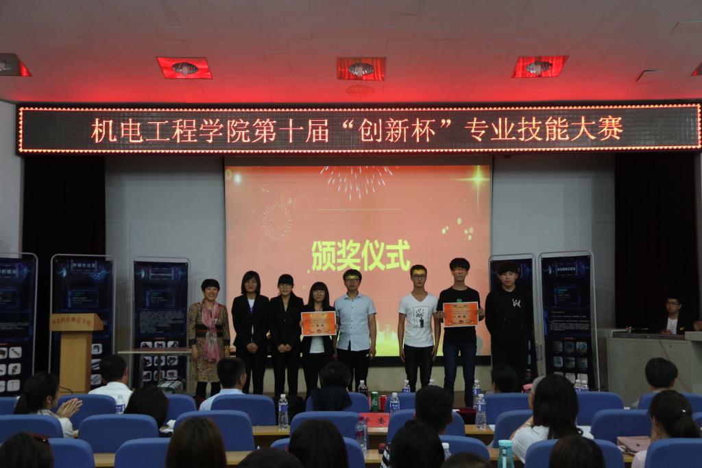 2018年5月24日下午,机电工程学院在昌黎校区学术报告厅举办了第十届“创新杯”专业技能大赛总决赛。机电工程学院党政领导班子、各教学部主任及指导老师等20余名老师担任大赛评委,全体新生参加观摩,共400余人。