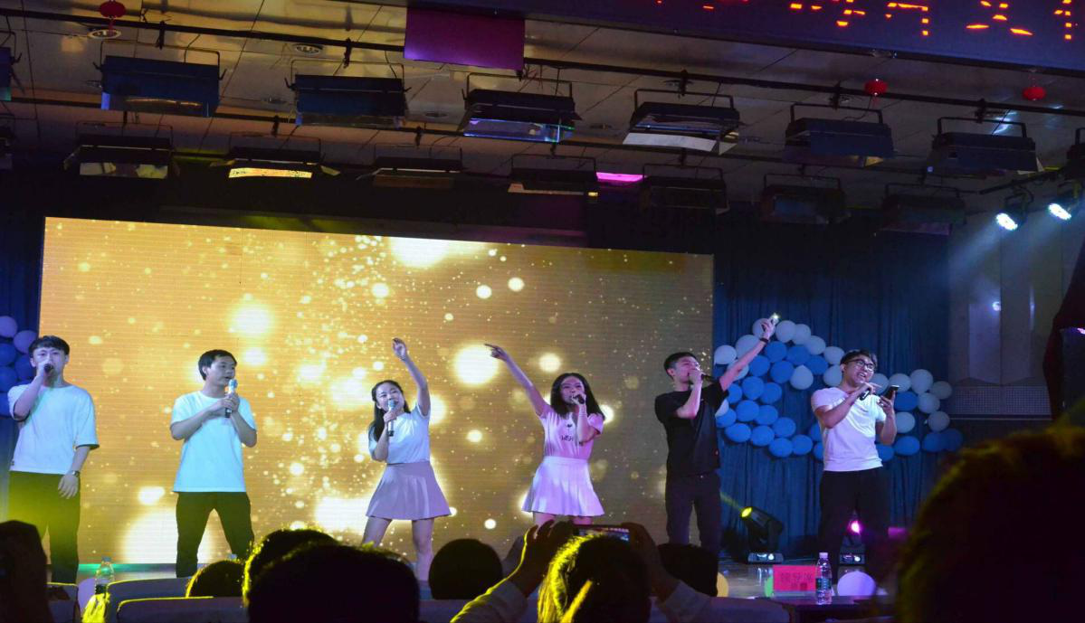 晚会在《我们的未来像梦一样自由》合唱中拉开了序幕,既表达了毕业生对未来的美好追求,也表达了同学们对母校发展的深情祝福。期间,有D舞社带来的动感街舞《Four girls》,点燃了全场气氛,也有舞蹈班的同学们贡献的专业级别舞蹈《海的追寻》,她们运用蓝色绸缎扇子,惟妙惟肖的演示了海的浪花,在缓慢且唯美的音乐声中,表达了对海洋的无限热爱及追寻。14级的毕业生们也纷纷走上舞台,奉献了歌曲联唱《青春不散场》、相声《光阴的故事》、小品《非常访谈》等众多精彩节目,用各种形式总结着过去四年的点点滴滴,为自己的大学生活画上了一个圆满的句号。
