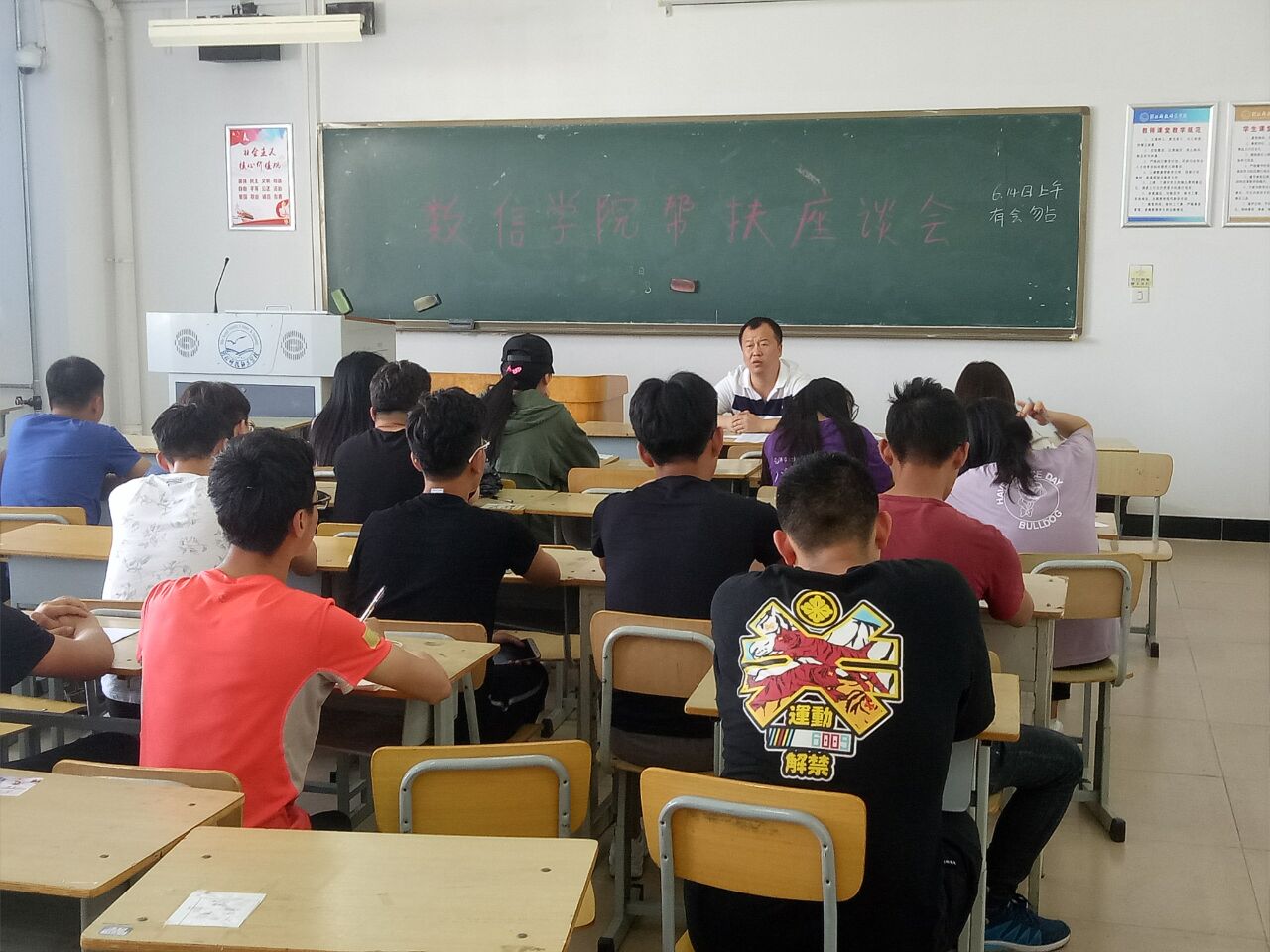 为全面推进数学与信息科技学院第三届学风建设年活动,2018年6月14日下午,数信学院在逸夫楼A601、A412、A413等8个教室组织本学期重修同学开展了“一对一”帮扶座谈会。本次座谈会由学院学工办老师分组主持,共251名重修同学参加。