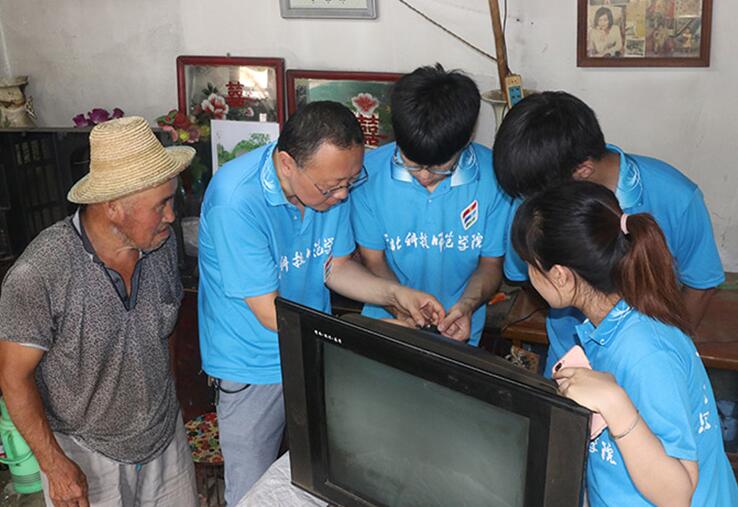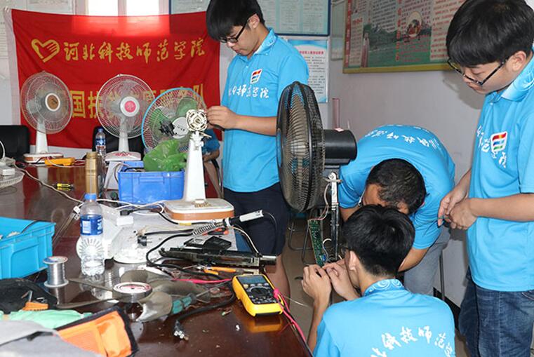 为深入学习贯彻习近平新时代中国特色社会主义思想和党的十九大精神,引领教育广大青年学生勇做担当民族复兴大任的时代新人,以实际行动助力精准扶贫,服务乡村振兴战略,切实在感受改革开放40年取得的新成就新面貌的生动实践中受教育、长才干、做贡献,根据上级文件精神,结合best365实际,机电工程学院特派出以“扶贫青春行,振兴中国梦”为主题的社会实践队到达后钱庄、马坨店、六合上城以及五峰山村进行为期一周的家电维修实践活动。