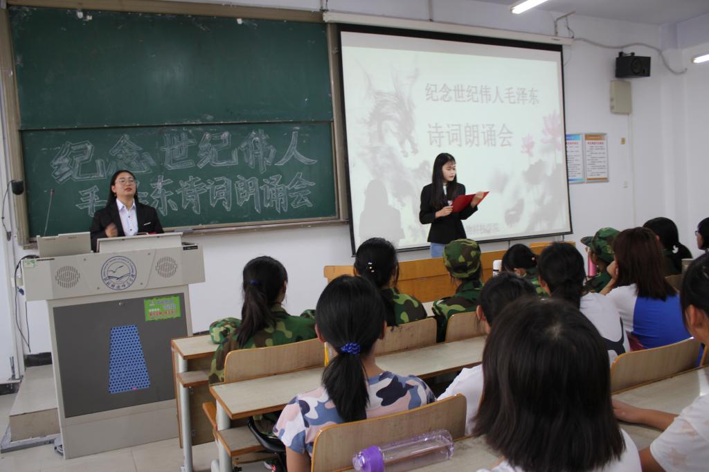 朗诵会精选了《沁园春·雪》、《七律·长征》、《七律·人民解放军占领南京》、《浪淘沙·北戴河》、《卜算子·咏梅》等10首诗词。在朗读毛主席的诗词中,同学们深刻感受到了伟人在诗词中所表达的豪迈革命气概和浪漫主义革命精神。被诗词中“更喜岷山千里雪,三军过后尽开颜”、“俱往矣,数风流人物,还看今朝”、“天若有情天亦老、人间正道是沧桑”、“问苍茫大地、谁主沉浮”等许多励志名句所折射出来的豪迈情怀所鼓舞和激励。朗诵欣赏毛泽东诗词,使青年学生从中领略到了他的民族情怀、政治情怀、人民情怀、山水情怀。