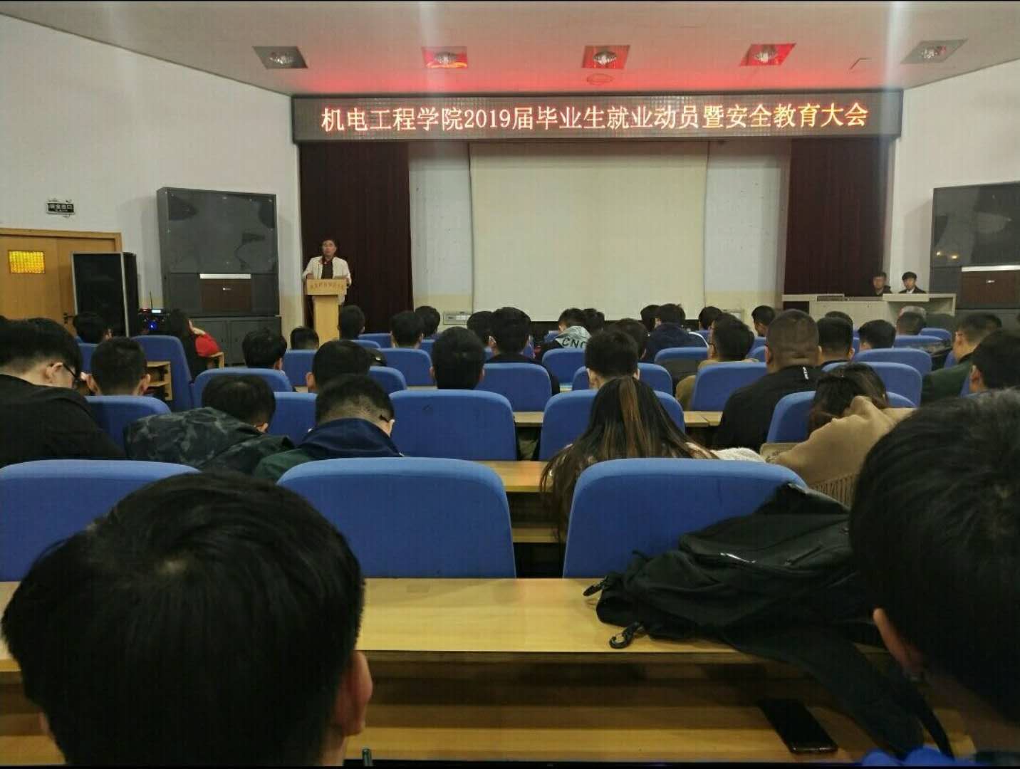 2018年10月18日,机电工程学院2019届本科毕业生就业动员大会在昌黎校区学生报告厅举行。机电工程学院党委班子成员、毕业班班主任、辅导员以及全体2019届毕业生参加了本次就业动员大会。