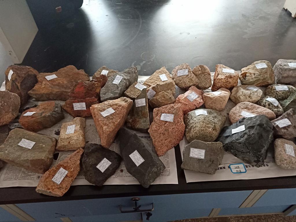 期间,由专业教师组织带领学生,深入到柳江国家地质公园的黑山窑、义院口、傍水崖等地采集了不同的三大岩石标本。师生克服困难,翻山越岭到多个采集地进行踏察,共采集岩石标本30余种300多块。学生在实验室对采集到的标本进行了清洗鉴定工作。在专业教师的指导下,同学们在辨识岩石结构、构造及矿物组成等特征的基础上完成了对岩石标本的分类鉴定命名,并为每一块岩石标本制作了含有岩石名称、类别、采集地等内容元素的岩石标本标签。最后,专业教师对各组提交的鉴定作品中存在的问题进行了纠正、点评和评比。