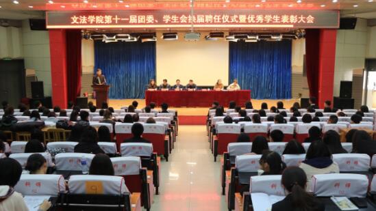 近日,文法学院第十一届团委、学生会换届聘任仪式暨优秀学生表彰大会在开发区校区报告厅举行。文法学院党政领导干部、团委、学生会成员及各班干部出席了大会。