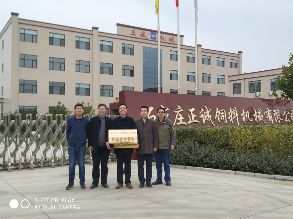 2018年11月10日,机电工程学院行政领导一行3人,赴石家庄正诚饲料机械有限公司,与企业签署了校企合作协议,举行了校企合作基地挂牌仪式。