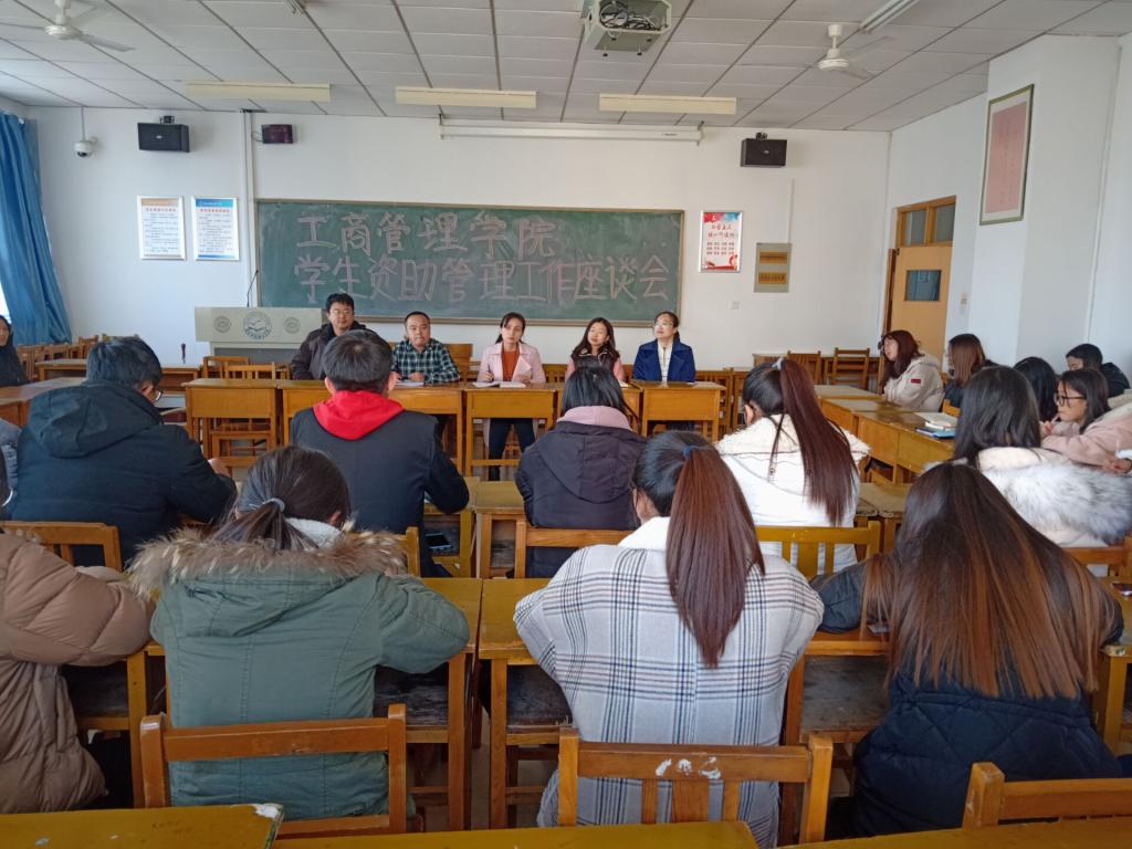 2018年12月13日下午2:30,工商管理学院在逸夫楼A501教室召开学生资助管理工作座谈会,学生工作主管领导、全体专职辅导员、各专业班级班长、资助委员和受助学生代表参加座谈会。