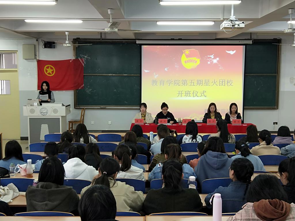 2019年4月4日下午,教育学院团委在综合楼412教室举办了第五期星火团校开班仪式。