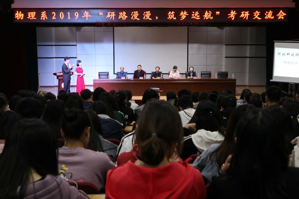 2019年4月18日晚7点,物理系举办了“研路漫漫 筑梦远航”考研交流会。物理系党政领导和学工办老师出席了交流会。