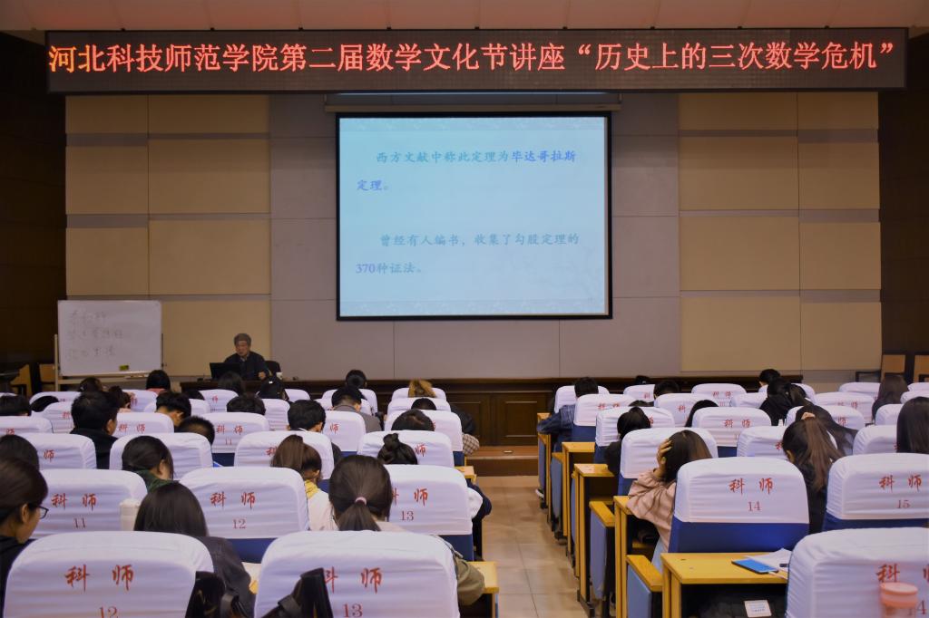 举办专题讲座。顾沛教授以“历史上的三次数学危机”为题,以生动有趣的现场互动引出数学的三次危机,并结合罗素等著名数学家刻苦钻研、历经磨难最终取得无人能及的数学成就的感人故事讲述数学的三次危机,回顾数学的历史。讲述过程中,顾沛教授由浅入深的引导同学们主动思考,并通过精彩纷呈的例证、图片和视频等形式充分展示了数学在数字、数学公式、分形几何等方面蕴含的文化魅力。