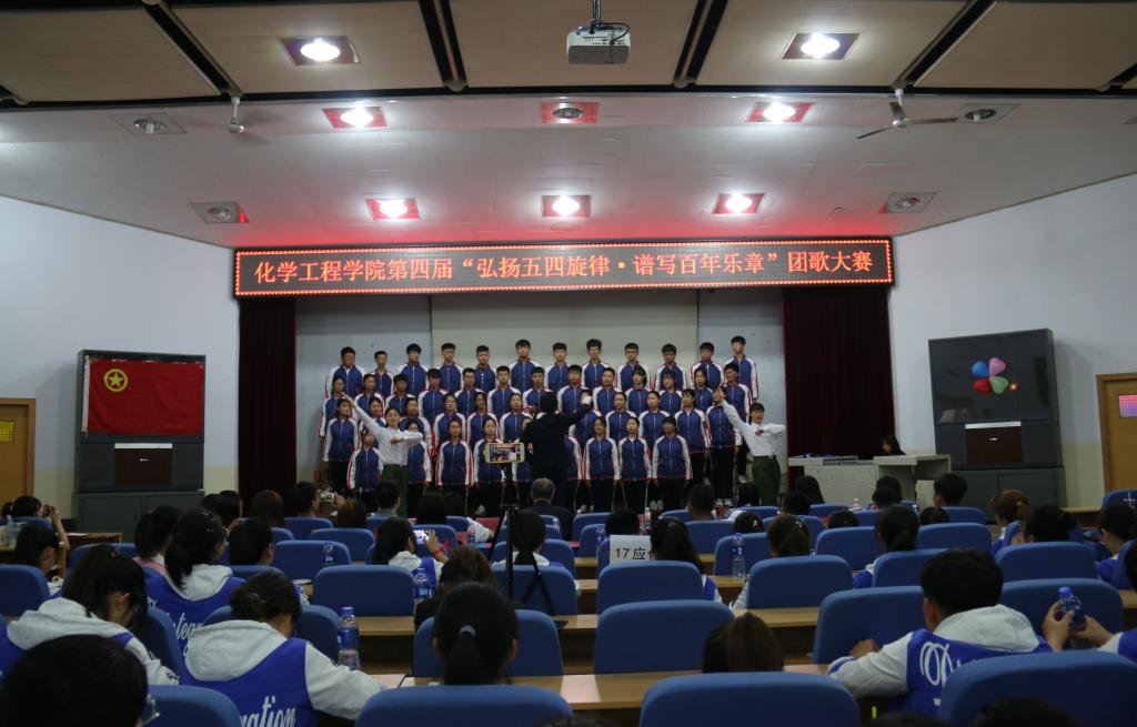 2019年5月11日,化学工程学院在昌黎校区学术报告厅举办了第四届“弘扬五四旋律,谱写百年乐章”团歌大赛。化学工程学院负责人、学工办老师以及400多名同学参加了此次活动。