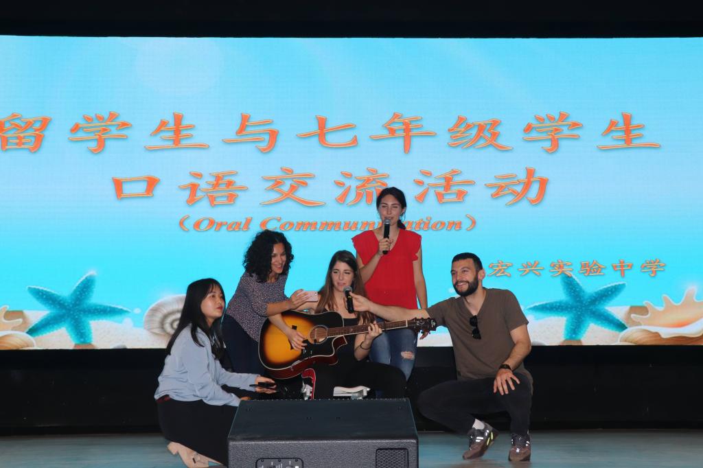 交流互动共分三项进行,首先,宏兴实验中学领导结合该校独特的办学理念与发展思维,针对文法学院学生就业趋向,作题为“如何成为一名优秀的中学教师”专题讲座,指导大学生目标明确、脚踏实地地学习和工作。然后,best3654名意大利籍留学生分别与七、八年级中学生进行现场口语交流和才艺互动展示。最后,汉语国际教育专业90余名同学分成小组,分别进入到17个班级,同时组织了一场题为“青春﹒奋斗”的主题班会,分享自己的学习经历和大学生活,引导中学生努力学习、青春无悔。