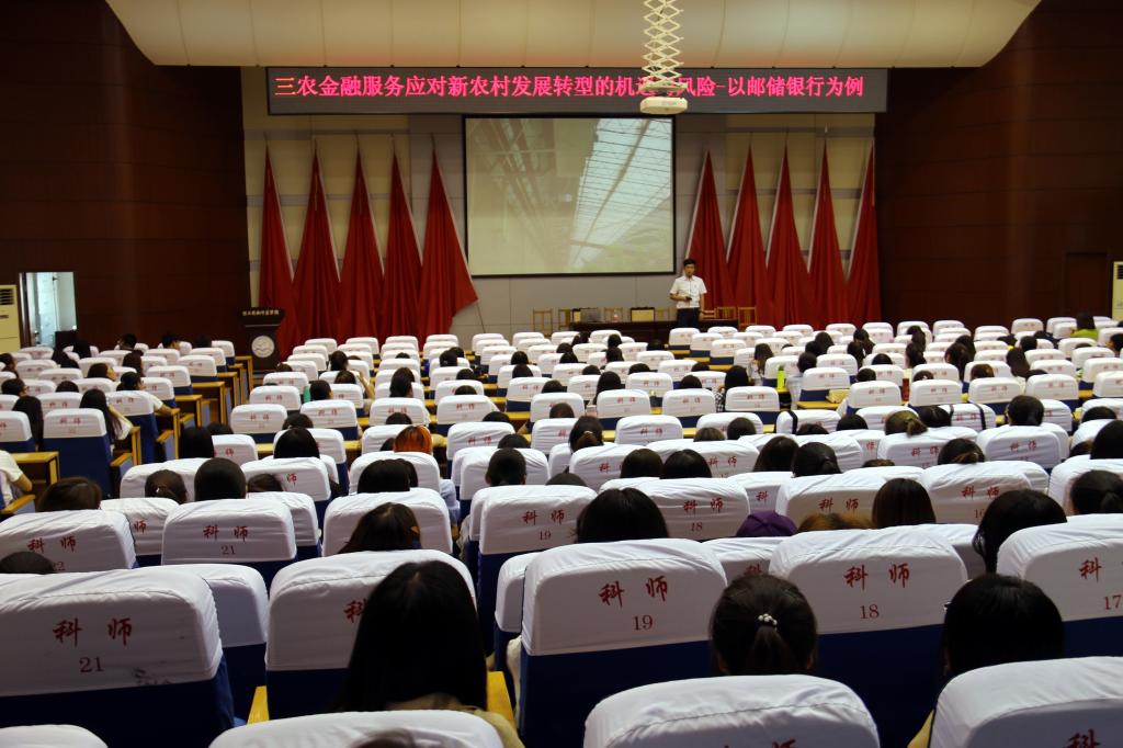2019年6月26日,财经学院邀请中国邮政储蓄银行秦皇岛市山海关支行行长毕磊来校作题为“三农金融服务应对新农村发展转型的机遇与风险”的专题报告。财经学院300余名师生聆听了报告。