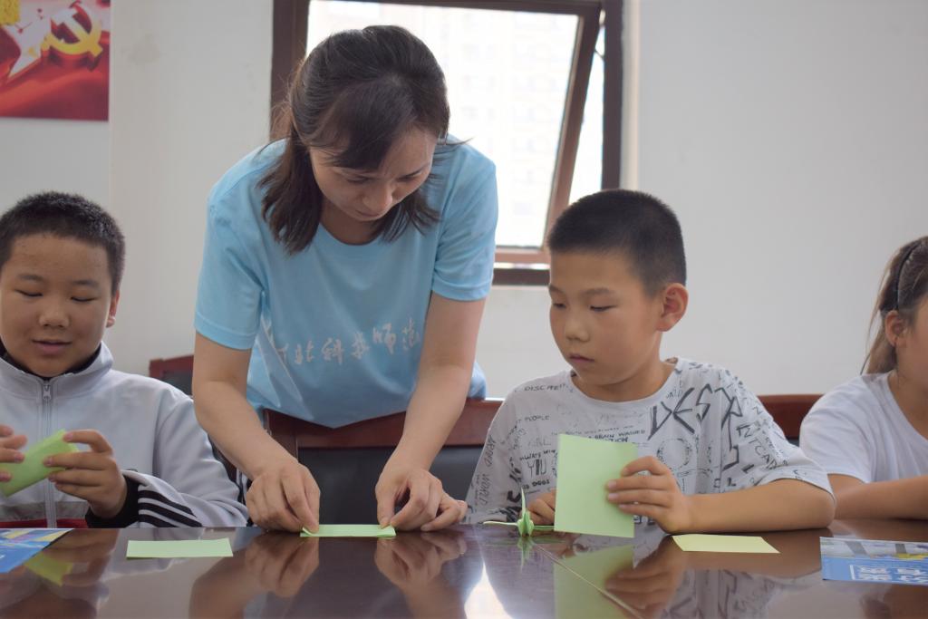 开始前,实践团成员对小朋友们进行知识提问,大致了解他们对垃圾分类的掌握程度,通过播放幻灯片向其讲解垃圾分类知识。活动大致分为现场教学、实际操作和纸鹤寄语三个模块。活动开始,实践团成员介绍四种垃圾,简单举例。小朋友们超高的理解力短时内便可举一反三了。活动如火如荼进行着,实践团以回收垃圾的废旧物品为材料,现场组织小朋友们进行垃圾分类,以表演才艺为契机,既宣传了垃圾分类知识,也将小朋友们的才艺充分展现。纸鹤寄语活动将现场气氛推向高潮,实践团成员一对一教学,保证全覆盖。小朋友们自发的将对环保的祝福语写在纸鹤的翅膀上,让祝福伴随纸鹤飘扬。