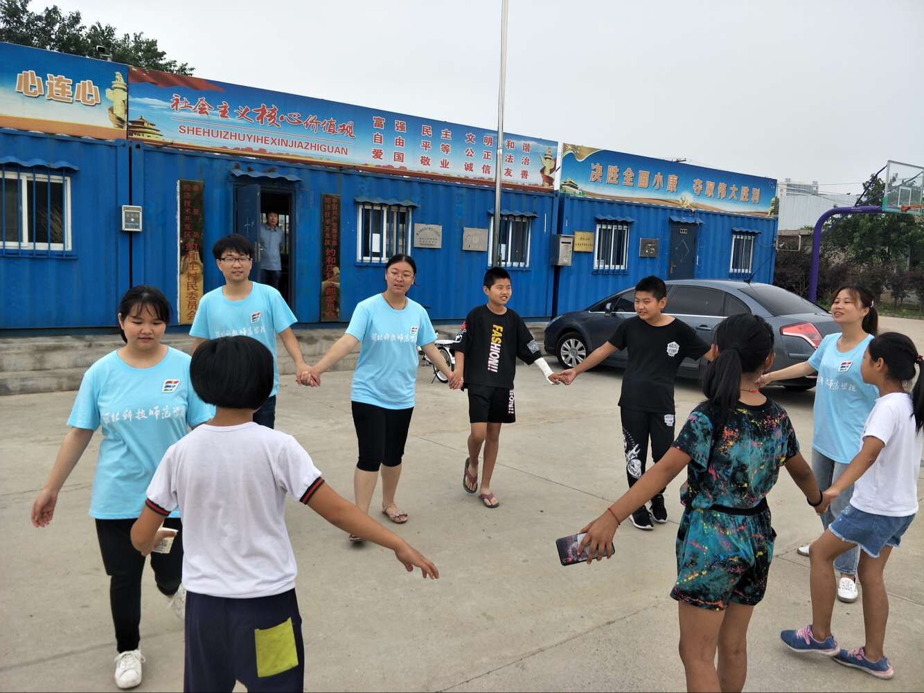 服装整齐的大学生带着嬉笑打闹的小朋友在村里做团辅游戏,这让许多村民们都驻足观看,村民刘大娘说:“这村里孩子们放了暑假,父母有的外出打工,他们在家里也没什么人陪着,有这些大哥哥大姐姐们带着做做游戏,还能教给他们交朋友的知识,这挺好的,我们很认可,也很感谢。”