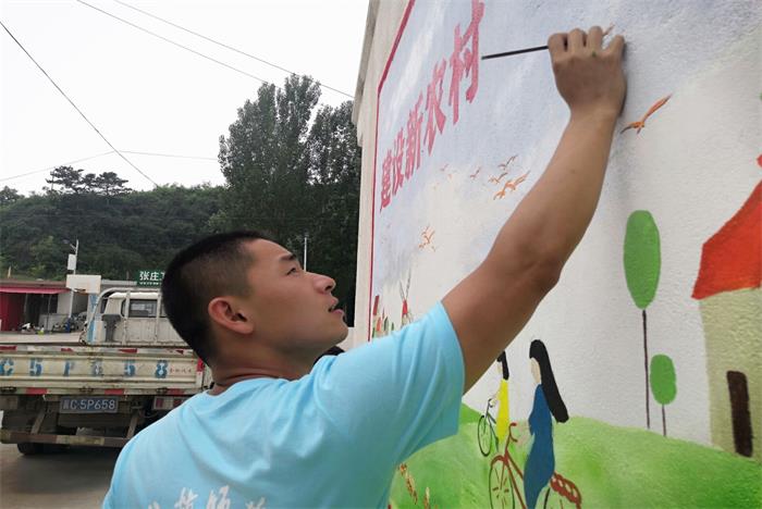 近日,艺术学院“扶智涂墙”暑期实践小分队来到秦皇岛市青龙满族自治县大巫岚镇张庄村开展为期七天的“精美墙绘助力扶贫政策宣传”暑期社会实践活动。为村里绘制特色文化墙。