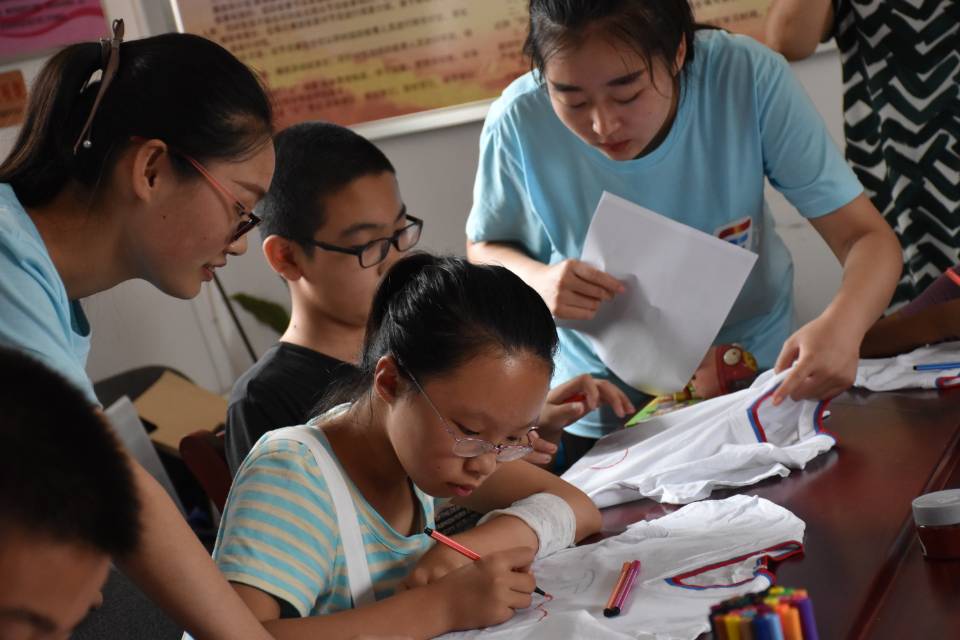 队员们指导学生绘制文化衫