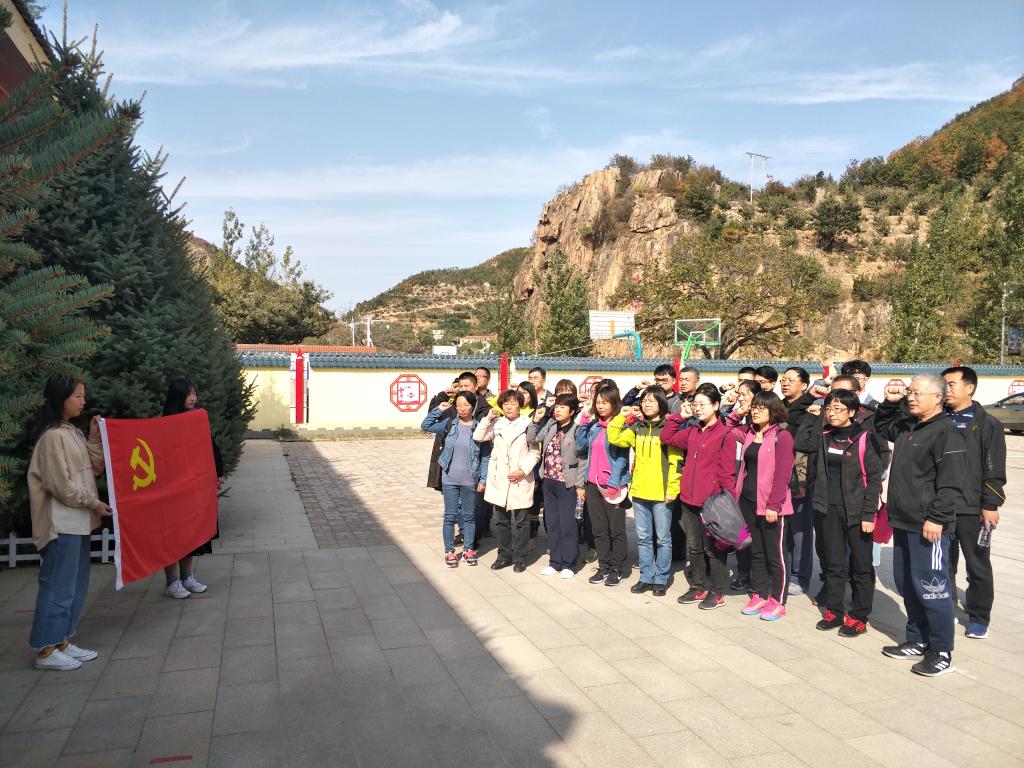 全体同志在讲解员的带领下参观了花场峪抗日纪念馆和烈士陵园,其以军民抗战历程为主线,分为“壮士北上、星火燎原,日寇铁蹄、残暴酷刑,同仇敌忾、铜墙铁壁,杰出人物、不朽丰碑,缅怀英烈、情系老区”五个部分。在馆内,一件件实物、一幅幅照片、一个个故事全面展现了花场峪这个不足500人的小山村,在冀热辽边区有大小战役200余次,钳制了日伪军10万多人,给敌人以沉重的打击,书写了冀热辽抗战史上的奇迹。英雄的花场峪村民为民族大义舍身忘死,抛头颅,洒热血,铁骨铮铮,英勇无畏,为中国革命的胜利书写下了军民抗战的英雄史篇。随后,在鲜红的党旗下,全体党员同志重温了入党誓词,更加坚定了理想信念。