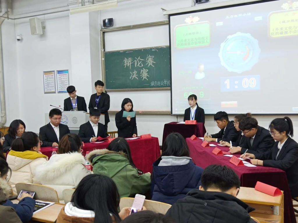 为提升学生思辨能力和创造力,丰富大学生课外生活,激发学生自主思考的能力,城市建设学院于2019年12月10日举办“外来文化与传统文化碰撞是否会影响国人的文化自信”为主题的辩论赛决赛。