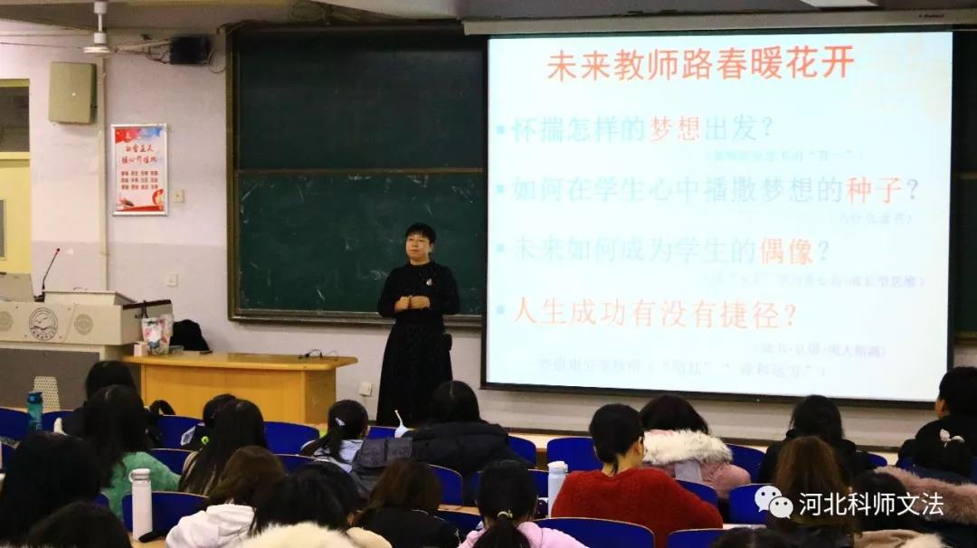 为让文法学院汉语言专业的同学们“聆听大师之声,深层次理解教育之真”,近日,文法学院在开发区校区举办“我的未来我来拼”专业教学讲座。讲座由中学高级教师,全国优秀教师何金英老师主讲。何老师结合自己的教学实践,运用大量生动的实例,向大家传授了自己的教学理念和经验。