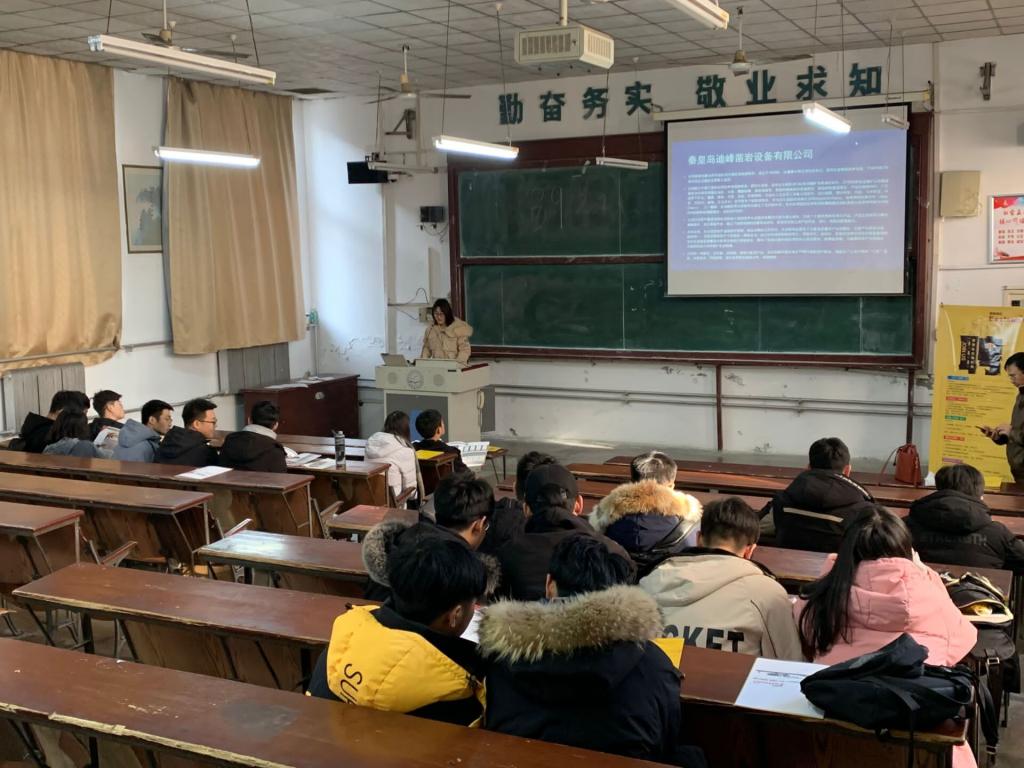 2019年12月26日,机电工程学院邀请秦皇岛迪峰凿岩设备有限公司来best365举办专场推介会。机电工程学院毕业班学生积极参加了本次推荐会。现场气氛活跃,同学们积极互动。
