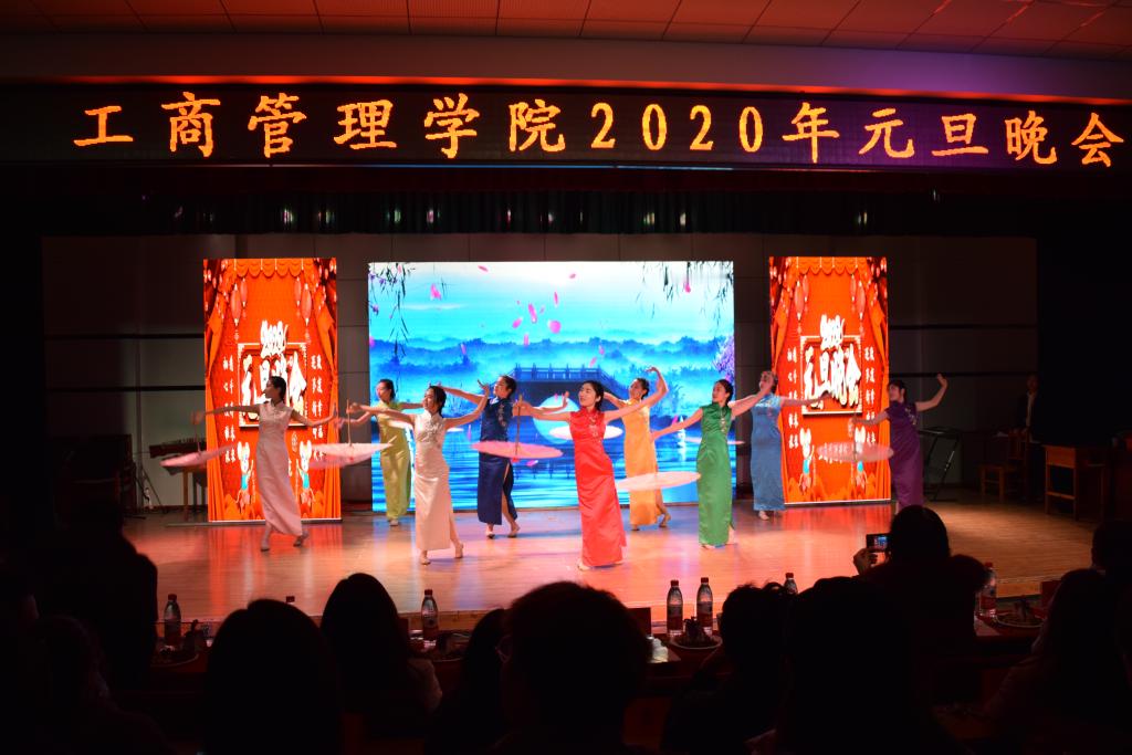 2019年12月25日晚,工商管理学院在秦皇岛校区多功能厅举办以“初心蕴雅怀,携手奔未来;逐梦新时代,欢度幸福年”为主题的元旦晚会。学院党政负责人、全体学生工作人员、班主任以及学生代表共300余人参加了此次盛会。学院全体师生带着对新年美好期盼欢聚一堂,喜迎新年。