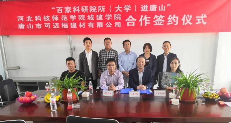 2020年9月30日,城市建设学院与唐山市可迈福建材有限公司校企合作签约仪式在可迈福建材有限公司成功举办。城市建设学院院长朱天志一行,滦南县青坨营镇镇长周来军、副镇长赵玉海,可迈福建材总经理王俐杰、厂长王永臣等出席本次活动,朱天志院长和王俐杰总经理代表校企双方签署了校企合作协议。