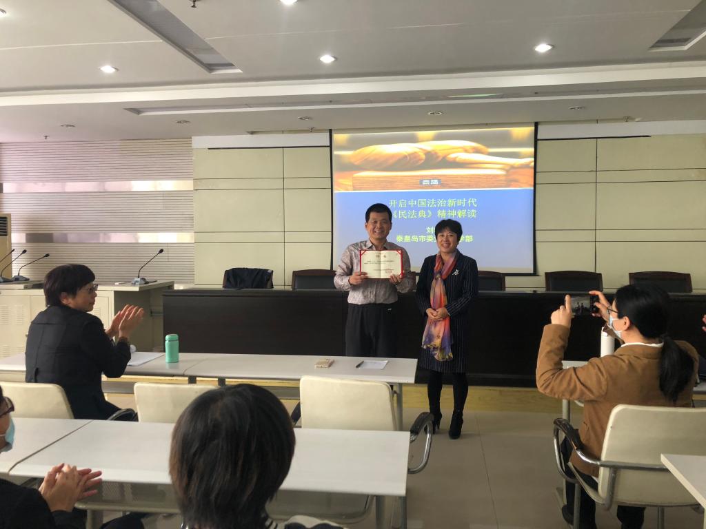 10月15日下午,思想政治理论教学部(以下简称思政部)在图书馆九楼报告厅举办了学术报告。思政部全体教师听取了由秦皇岛市委党校法学部主任刘勃教授所作的“《民法典》精神解读”专题报告。