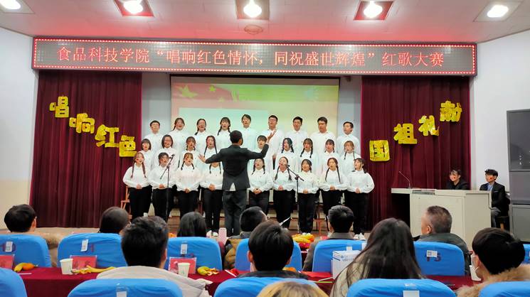 2020年12月10日,食品科技学院举办了以“唱响红色情怀,同祝盛世辉煌”为主题的红歌合唱比赛,学院党政负责人观看了比赛并担任评委。