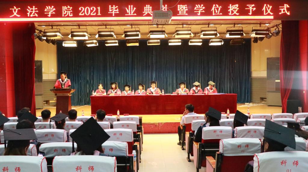 2021年6月15日上午,文法学院在开发区二楼报告厅举行2021届毕业典礼。学院2021届338名毕业生参加,学院党政负责人、各教学部管理人员、教师代表相聚一堂,共同见证2021届毕业生掀开人生新篇章,开启新的人生旅程。