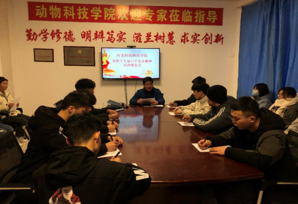 12月16日下午,动科学院举行党的十九届六中全会精神宣讲会。学院宣讲团成员、学院党委书记贠小波作了首场报告。学院十九届六中全会精神宣讲团成员、专职组织员、学生党员、入党积极分子和共青团员代表参加会议。